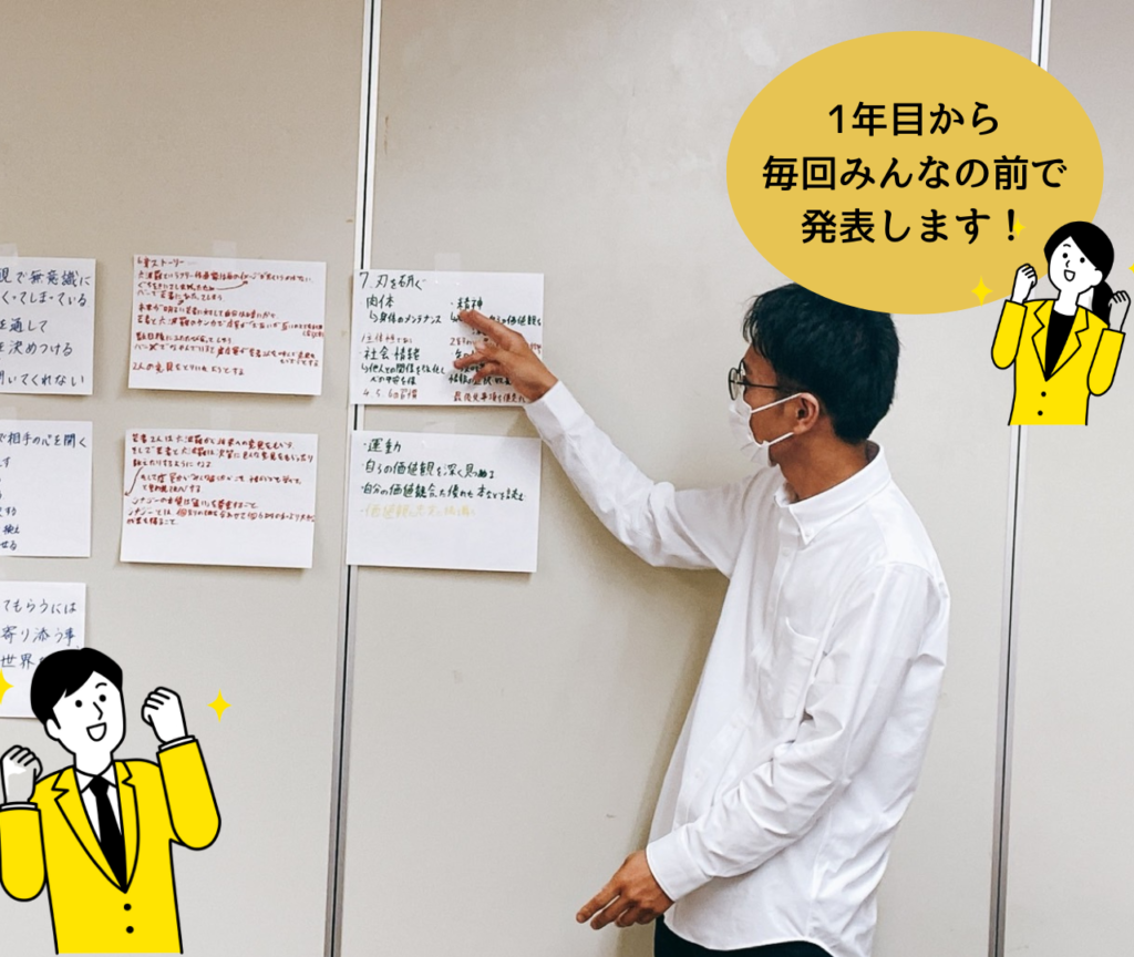 4年目は、自分で課題を見つけて自分で解決できるように取り組んでもらいます。自主性をはぐくむため、研修生自ら行動するようなカリキュラムを組んでいます。プロキャリを卒業した後でも、自分たちで会社や社会の課題を見つけ、解決できる方法を探し、自走できる人間力を育みます。