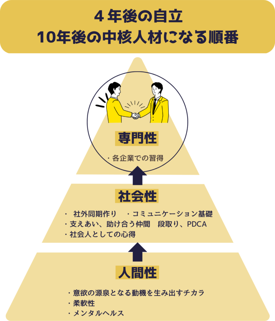 *4年後の自立、10年後の中核人材になるためには専門性が必要と考えています。