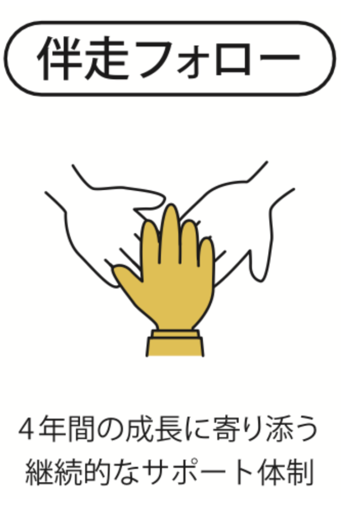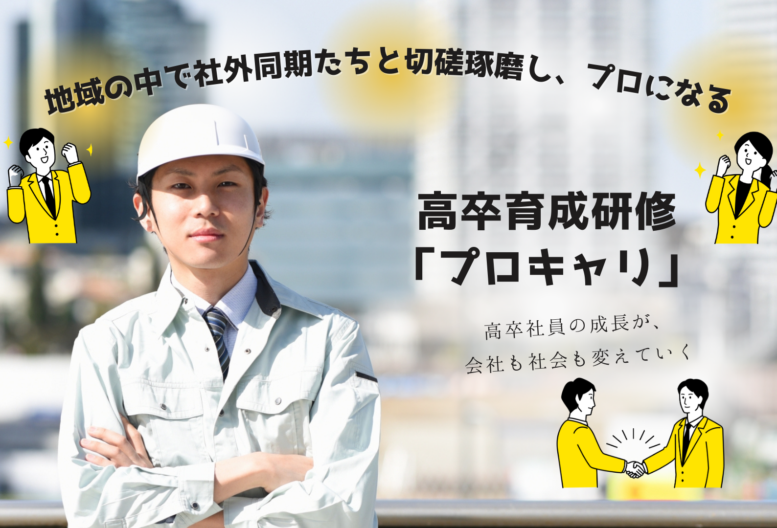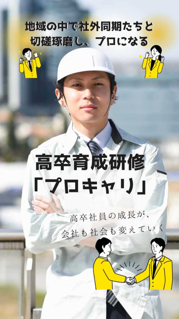 プロキャリの4年間の研修を通して、高卒社員の「仕事力」と共に「人間性」「社会性」「職務能力」を育てていきます。