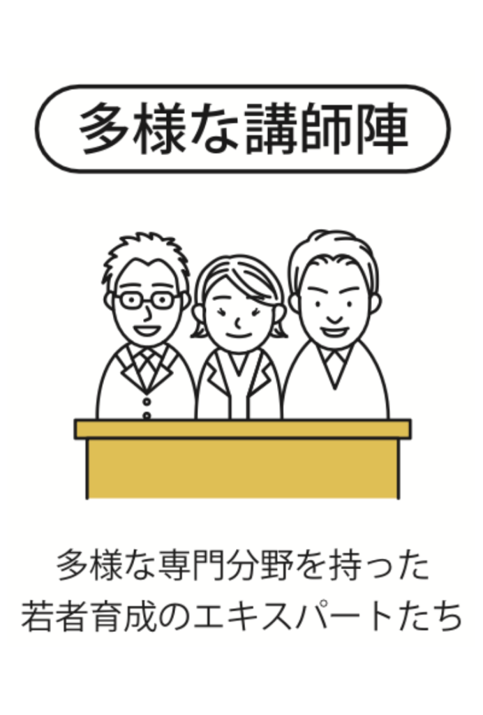 プロキャリ研修では、高卒社員を指導する時間が少ない会社に代わり、高卒社員が「会社でも社会でも活躍する」人材にみるみる育つための自主的に物事を取り組める環境と指導するプロの専門家を準備いたしました。